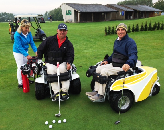 Abbildung: Gute Laune auf dem Putting-Green: Rollstuhl-Golfer Nachtwey und Lorente aus Spanien (Foto: bräu)