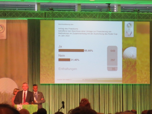 "Ich möchte den Mitgliedern des Deutschen Golf Verbandes sehr herzlich danken, dass Sie sich so deutlich hinter die deutsche Ryder-Cup-Bewerbung stellen. Der heutige Tag war für unser Projekt von entscheidender Bedeutung, und wir sind für die tatkräftige Unterstützung des DGV-Verbandstages und damit der deutschen Golfgemeinde sehr dankbar", sagt Marco Kaussler, Leiter der Bewerbung RC Deutschland. "Wir haben für die Kampagne den etwas schwierigeren, aber unserer Überzeugung nach einzig richtigen Weg gewählt und alle Golfanlagen in Deutschland in einer Abstimmung einbezogen. Mit dem heutigen Votum bekommt die Bewerbung noch einmal kräftig Rückenwind. In der kommenden Woche werden wir weitere positive Nachrichten verkünden, so dass wir am 30. April ein aussichtsreiches Konzept einreichen werden.".jpg)